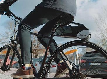 Kit per tutte le bici standard. In un attimo aggiungete motore elettrico alla vostra bicicletta e si stacca in un click per essere ricaricato in ufficio o casa . Potente grazie alle 3 batterie con grande autonomia.