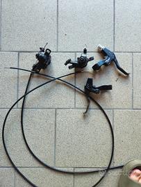 SET Kit Pinze Freni a Disco Tektro Decathlon per Mtb-Emtb, anteriore e posteriore, completi di: 2 LEVE, DESTRA E SINISTRA 2 PINZE ANTERIORE+POSTERIORE 2 GUAINE (CAVI), ANTERIORE E POSTERIORE COMPATIBILI PER TUTTE LE BICI DECATHLON E NON SOLO Pastiglie freni in ottime condizioni.
