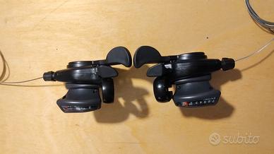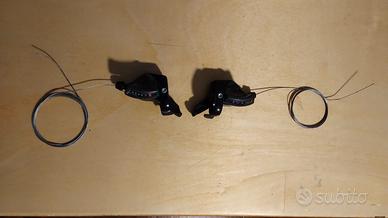 Vendo kit leve cambio per deragliatore posteriore ed anteriore marca microshift. Sono presenti 2 selettori a leva con possibilità di selezionare 3 marce nel cambio anteriore e 7 nel cambio posteriore. entrambi sono comprensivi di cavo in ferro già inserito nell'alloggiamento così da essere pronti al montaggio sulla bici. Funzionanti ed in ottime condizioni usati poco. Per maggiori informazioni non esitate a contattarmi.