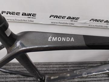 Forcella: Émonda SLR full carbon, cannotto conico in carbonio, passaggio cavi freno interno, disco flat mount, perno passante 12x100mm