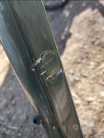 Vendo telaio Commencal Meta TR V4 29, taglia L, colore Green (Marzo 2023). Dopo 3 anni di mal di schiena vendo per passaggio a taglia XL stesso modello. PUNTI DI FORZA: PROTEZIONE: Il telaio è completamente pellicolato. La pellicola è quella "vissuta" (un po' ingiallita dal tempo), ma ha fatto il suo dovere: sotto la vernice è praticamente nuova. AMMORTIZZATORE: Fox DPS originale con sole 10 uscite (4 mesi di vita). Praticamente nuovo, pronto a girare senza revisioni. Sostituito per passaggio a Float X. EXTRA: Movimento centrale installato (6 mesi di vita) e attacco manubrio da 50mm inclusi. Manutenzione regolare presso Comabike di Bizzarone (CO). STATO DEL TELAIO: Presente un bozzetto sul tubo obliquo (per non cadere mi sono appoggiato ad una roccia sporgente). Per non lasciare il metallo scoperto, ho applicato dello stucco metallico in pasta protettivo e, per pura estetica, ho coperto il tutto con un adesivo "Trail Crosa" verde e un ulteriore strato di pellicola trasparente. Il danno è puramente estetico e così sigillato è protetto da fango e ossidazione. Ci ho pedalato un anno senza alcun problema. Nelle foto ci sono i dettagli. NON SPEDISCO, consegno a mano in scatola Commencal. Zona Varese, Como, Saronno