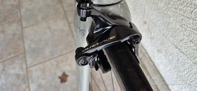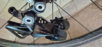vendo kit telaio no-brand misura centro-centro 565 ideale per altezze 177-186cm incluso cockpit 110x420, incluso portaborraccia, reggisella, sella, freni direct-mount Dura ace 9100, deragliatore meccanico dura ace 9100 11v, cambio posteriore meccanico dura ace 9100 11v, ruote shimano wh-rs700 (serie ultegra) tubeless, pacco pignoni ultegra 11v, copertoncini veloflex (60%). usato 3 stagioni (circa 10000km totali di cui 5000 sui rulli), normali segni di utilizzo ma perfettamente funzionale, ideale per principianti, come seconda bici o per bici sa rulli. per qualsiasi informazione prego contattatemi