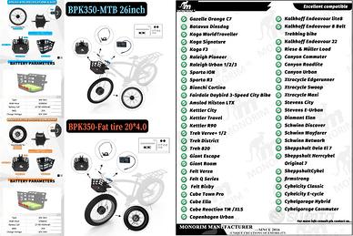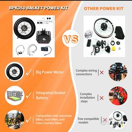 MONORIM BPK350 Kit di alimentazione e-bici, per trasformazione bici normale in ebike o sostituzione aggiornamento della bici 2 versioni o ruota da mtb 26 o da ebike (fatbike)
