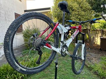 Kona clump 7005 in alluminio Downhill biammortizzata - Taglia S - Cambio shimano Deore anteriore 44-22 - Cambio posteriore Alivio NUOVO 9 rapporti 34-11 - Catena nuova - Pneumatici Maxxis usati - Ruote equalizer 27 sun-ringle - Ammortizzatore centrale Fox float RP2 - Forcella Marzocchi Bomber - Freni a disco shimano br-m575idraulici Ritiro a cura dell'acquirente, prezzo leggermente trattabile.