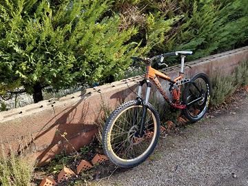 Vendo mtb full ammortizzata serie garbanzo dc limitata della kona, possiede un rock shock domain 2007 all'anteriore 170mm per enduro all train, fox dhx 3.0 al posteriore con molla upgradata, dischi maggiorati appena revisionati con impianto idraulico hayes a 2 pistoncini, movimento centrale shimano deore + il suo originale, pedali flat + pedali clippati, gomme nuove con camera d'aria fornisco altri accessori per la completa manutenzione del mezzo