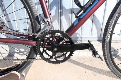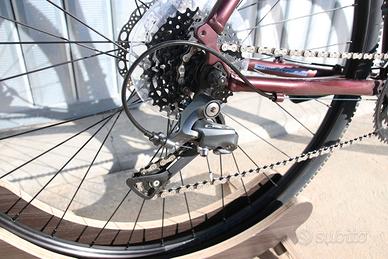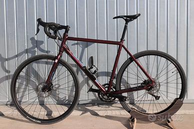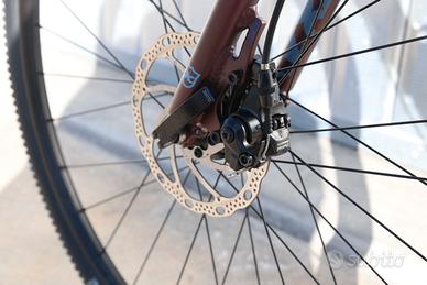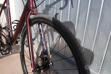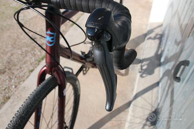 🚴♂️ Kona Rove AL 700 2023 – Taglia 56 – Gravel – Revisionata Vendesi Kona Rove AL 700 anno 2023 taglia 56, bici gravel ideale per chi cerca versatilità, comfort e affidabilità sia su strada che su sterrato. La bici è stata completamente revisionata presso la nostra officina specializzata ed è pronta all’uso. Si presenta in ottimo stato, sia estetico che meccanico. 👉 Mezzo comodo e versatile, perfetto per viaggi, commuting e uscite gravel, pronto per essere utilizzato senza ulteriori spese. 🔧 Specifiche Tecniche 🚲 Telaio Telaio: Kona Rove AL 700 Anno: 2023 Taglia: 56 Colore: viola ⚙️ Trasmissione Cambio: Shimano Claris Comando: Shimano Claris Cassetta: Shimano 8 velocità Guarnitura: Shimano Corona: Shimano doppia 🛑 Freni Freni: Tektro Mira 🛞 Ruote Cerchi: WTB SX19 📏 Componenti Reggisella: Kona 🛠️ Stato della Bicicletta ✔ Bici revisionata presso la nostra officina ✔ Controllo completo effettuato (freni, cambio, trasmissione) ✔ Pronta all’uso, nessun lavoro da fare ✔ Condizioni generali: ottime 📞 Per info contattaci al numero