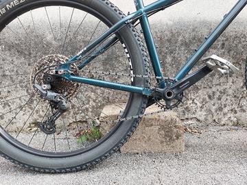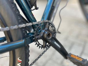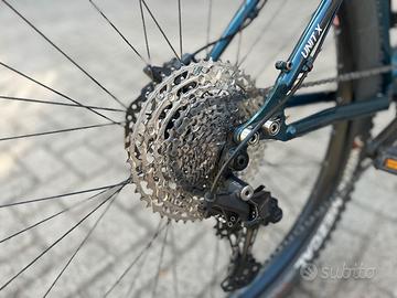 TELAIO E FORCELLA Kona Unit X Shimano Deore taglia M media, verde che cangia sul blu, qualche segno sul telaio dovuto alle borse, ma no ruggine botte o crepe. La bicicletta ha viaggiato, ma è in ottima forma. LA VENDITA SI RIFERISCE AL SOLO TELAIO E FORCELLA CON RELATIVO MOVIMENTO CENTRALE, SERIE STERZO E ASSI RUOTA!!!