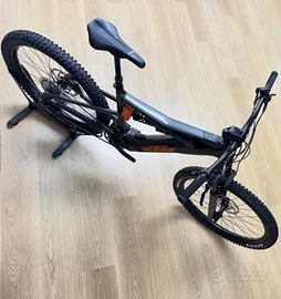 KTM Macina Prowler Pro del 2022 con solo 865 km percorsi praticamente come nuova, telaio tutto in carbonio con 180mm di escursione e ruote da 29 anteriore e 27,5 al posteriore, l' e-bike da Enduro di casa Ktm. La bici è in perfette condizioni ed è stata sostituita per passaggio a Specialized è montata come da catalogo solo i freni sono stati sostituiti con i super Formula Cura 4, motore Bosch Cx 4 con display Kiox e batteria integrata da 625Wh.