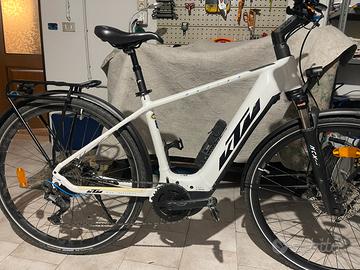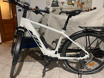 Vendo KTM Macina Sport P610 del 2021, bicicletta elettrica trekking utilizzata esclusivamente per brevi tragitti cittadini. Presenta normali segni di usura, nessun danno strutturale. Perfettamente funzionante. ⚡ Caratteristiche principali: Motore Bosch Performance Gen.3 – 65 Nm, assistenza fino a 25 km/h Batteria Bosch PowerTUBE 625Wh integrata nel telaio Display Bosch Intuvia LCD con telecomando remoto Telaio in alluminio 6061 – Taglia 51 Forcella ammortizzata Suntour NCX-D (63mm) Cambio Shimano Deore 10 velocità Freni a disco idraulici Shimano MT200 Pneumatici Schwalbe Marathon Mondial 42-622 (700C) 4 livelli di assistenza: Eco / Tour / Sport / Turbo Luci integrate B&M (anteriore 50Lux + posteriore LED) Parafanghi, portapacchi e cavalletto inclusi 📋 Dettagli: Anno: 2021 Taglia telaio: 51 Colore: Metallic White / Black + Blue Condizioni: buone, normali segni di usura da uso cittadino Prezzo: 2.000€ trattabili Seria e disponibile a trattativa ragionevole. Possibilità di visionare di persona.