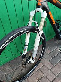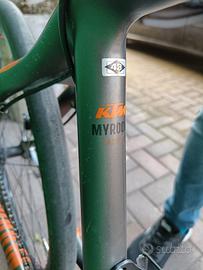 Vendo Mountain bike KTM Myroon Racing World Cup, misura 43. Telaio in carbonio. Freni Shimano nuovi con dischi da 160 Cambio Shimano XTR Ruote Shimano XT 26" Forcella RockShox World Cup Manopole nuove Cambio con corona doppia anteriore 40-27T In foto sono montate le ruote da strada, ma sono inclusi anche camere d'aria e copertoni da MTB. Per info o altre foto chiedete pure.