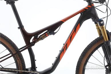 Bici ricondzionata | 1 anno di garanzia | Immagini reali | Disponibilità immediata | Finanziamento da 318 € in 12 mesi | Spedizione in tutta Italia. · Prezzo listino: 6500 € · Scontata su zyclora.it: 3827 € Bicicletta Mountain Bike doppia sospensione - Telaio in Carbonio - Taglia M - Dimensioni della ruota: 29" - Deragliatore: Sram X0 AXS - 12 Velocità velocità - Cassetta: 10-52-T -Leve del cambio: Sram AXS - Pedivelle: Sram GX - Corone: 32-T - Freni: Shimano XT - Ruote: RaceFace Next R - Forcella: Fox 34 SC Factory Kashima -120mm di escursione - Ammortizzatore: Fox Float Factory Kashima - Materiale della potenza: Alluminio - Manubrio: - Reggisella: Alluminio Maggiori informazioni sulla bici La KTM Scarp Exonic è la bicicletta da montagna definitiva per gli amanti dell'avventura. Dotata del sistema innovativo Sram X0 AXS, questo modello offre cambi elettronici precisi e senza sforzo, garantendo prestazioni eccezionali su qualsiasi terreno. Il suo telaio leggero e resistente consente una manovrabilità agile, mentre la sospensione doppia assorbe ogni buca, offrendo un'esperienza di guida fluida e controllata. Con un design moderno e attraente, la Scarp Exonic non solo si distingue per le prestazioni, ma anche per lo stile. Preparati a conquistare sentieri con questo gioiello di KTM. Esaminamo ogni bici in dettaglio · Controlliamo l'integrità strutturale del telaio e delle ruote. · Controlliamo il funzionamento delle sospensioni, della trasmissione e dei freni. · Esaminiamo tutti gli articoli soggetti a usura e modifichiamo quelli necessari per garantire il corretto funzionamento. · Analizziamo il funzionamento del motore, della batteria e del display, nel caso delle bici elettriche. · Effettuiamo la lubrificazione completa e il serraggio di tutte le viti della bici.