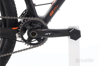 Bici ricondzionata | 1 anno di garanzia | Immagini reali | Disponibilità immediata | Finanziamento da 147 € in 12 mesi | Spedizione in tutta Italia. · Prezzo listino: 3500 € · Scontata su zyclora.it: 1767 € Bicicletta Mountain Bike doppia sospensione - Telaio in Carbonio - Taglia L - Dimensioni della ruota: 29" - Deragliatore: Shimano XT - 11 Velocità velocità - Cassetta: 11-50-T -Leve del cambio: Shimano XT - Pedivelle: Shimano XT - Corone: 32-T - Freni: Shimano XT - Ruote: KTM Pro - Forcella: Fox 32 SC Performance -100mm di escursione - Ammortizzatore: Fox Float Performance Elite - Materiale della potenza: Alluminio - Manubrio: - Reggisella: Alluminio Telescopica Maggiori informazioni sulla bici La KTM Scarp Master è la mountain bike full suspension che ridefinisce le prestazioni sui sentieri più impegnativi. Dotata del gruppo Shimano XT, offre cambi precisi e una trasmissione affidabile per conquistare qualsiasi terreno. Il suo telaio leggero e la geometria avanzata garantiscono agilità e controllo, mentre la sospensione integrale assorbe ogni ostacolo. Ideale per ciclisti che cercano velocità, efficienza e tecnologia all'avanguardia, la Scarp Master è la scelta dei rider più esigenti. Scopri il vero spirito KTM e porta la tua esperienza off-road al livello successivo. Esaminamo ogni bici in dettaglio · Controlliamo l'integrità strutturale del telaio e delle ruote. · Controlliamo il funzionamento delle sospensioni, della trasmissione e dei freni. · Esaminiamo tutti gli articoli soggetti a usura e modifichiamo quelli necessari per garantire il corretto funzionamento. · Analizziamo il funzionamento del motore, della batteria e del display, nel caso delle bici elettriche. · Effettuiamo la lubrificazione completa e il serraggio di tutte le viti della bici.