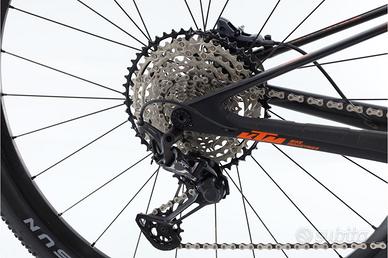 Bici ricondzionata | 1 anno di garanzia | Immagini reali | Disponibilità immediata | Finanziamento da 160 € in 12 mesi | Spedizione in tutta Italia. · Prezzo listino: 4500 € · Scontata su zyclora.it: 1923 € Bicicletta Mountain Bike doppia sospensione - Telaio in Carbonio - Taglia M - Dimensioni della ruota: 29" - Deragliatore: Shimano XT - 12 Velocità velocità - Cassetta: 10-51-T -Leve del cambio: Shimano XT - Pedivelle: Shimano SLX - Corone: 34-T - Freni: Shimano SLX - Ruote: KTM Comp 25 - Forcella: Fox 32 SC Performance -100mm di escursione - Ammortizzatore: Fox Float Performance - Materiale della potenza: Alluminio - Manubrio: - Reggisella: Alluminio Maggiori informazioni sulla bici La KTM Scarp Master è la mountain bike full suspension che ridefinisce le prestazioni sui sentieri più impegnativi. Dotata del gruppo Shimano XT, offre cambi precisi e una trasmissione affidabile per conquistare qualsiasi terreno. Il suo telaio leggero e la geometria avanzata garantiscono agilità e controllo, mentre la sospensione integrale assorbe ogni ostacolo. Ideale per ciclisti che cercano velocità, efficienza e tecnologia all'avanguardia, la Scarp Master è la scelta dei rider più esigenti. Scopri il vero spirito KTM e porta la tua esperienza off-road al livello successivo. Esaminamo ogni bici in dettaglio · Controlliamo l'integrità strutturale del telaio e delle ruote. · Controlliamo il funzionamento delle sospensioni, della trasmissione e dei freni. · Esaminiamo tutti gli articoli soggetti a usura e modifichiamo quelli necessari per garantire il corretto funzionamento. · Analizziamo il funzionamento del motore, della batteria e del display, nel caso delle bici elettriche. · Effettuiamo la lubrificazione completa e il serraggio di tutte le viti della bici.