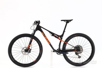 Bici ricondzionata | 1 anno di garanzia | Immagini reali | Disponibilità immediata | Finanziamento da 160 € in 12 mesi | Spedizione in tutta Italia. · Prezzo listino: 4500 € · Scontata su zyclora.it: 1923 € Bicicletta Mountain Bike doppia sospensione - Telaio in Carbonio - Taglia M - Dimensioni della ruota: 29" - Deragliatore: Shimano XT - 12 Velocità velocità - Cassetta: 10-51-T -Leve del cambio: Shimano XT - Pedivelle: Shimano SLX - Corone: 34-T - Freni: Shimano SLX - Ruote: KTM Comp 25 - Forcella: Fox 32 SC Performance -100mm di escursione - Ammortizzatore: Fox Float Performance - Materiale della potenza: Alluminio - Manubrio: - Reggisella: Alluminio Maggiori informazioni sulla bici La KTM Scarp Master è la mountain bike full suspension che ridefinisce le prestazioni sui sentieri più impegnativi. Dotata del gruppo Shimano XT, offre cambi precisi e una trasmissione affidabile per conquistare qualsiasi terreno. Il suo telaio leggero e la geometria avanzata garantiscono agilità e controllo, mentre la sospensione integrale assorbe ogni ostacolo. Ideale per ciclisti che cercano velocità, efficienza e tecnologia all'avanguardia, la Scarp Master è la scelta dei rider più esigenti. Scopri il vero spirito KTM e porta la tua esperienza off-road al livello successivo. Esaminamo ogni bici in dettaglio · Controlliamo l'integrità strutturale del telaio e delle ruote. · Controlliamo il funzionamento delle sospensioni, della trasmissione e dei freni. · Esaminiamo tutti gli articoli soggetti a usura e modifichiamo quelli necessari per garantire il corretto funzionamento. · Analizziamo il funzionamento del motore, della batteria e del display, nel caso delle bici elettriche. · Effettuiamo la lubrificazione completa e il serraggio di tutte le viti della bici.