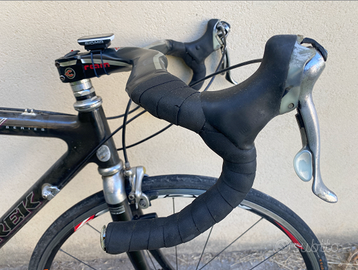 Trek 5500 OCLV Carbon 120 è una bicicletta da strada full carbon cioè totalmente in carbonio. State acquistando un pezzo di storia del ciclismo. Fu la prima bici totalmente in carbonio usata da Lance Amstrong nel 1999. Grazie alla tecnologia Optimum Compaction, Low Void (OCLV), il 5500 è stato il telaio di produzione più leggero al mondo, con un peso di appena 912 g.