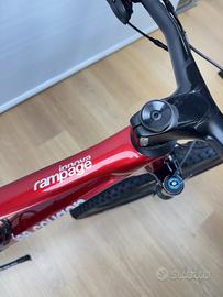 Lee Cougan Rampage Innova Team colorazione del 2023 con circa 2 anni di utilizzo e tenuta in modo maniacale non presenta nessun tipo di graffio o segno ed anche la meccanica è in perfetto stato, usata sempre da nostro fidato cliente esclusivamente nei weekend. La bici è montata come da catalogo con forcella Fox 34 Factory da 100mm, gruppo Sram XX1 elettronico a 12 velocità con misuratore di potenza, manubrio integrato Comptrol in carbonio, solo le ruote sono state sostituite con le Roval Control con mozzi Dt Swiss 350 e il reggisella telescopico Switch. Il nuovo modello hardtail di casa Lee Cougan con tecnologia ISS, una piccola sospensione da 35mm integrato al tubo verticale per un maggiore comfort e stabilità nella guida, ma allo stesso la rigidità di una front in salita. Taglia L adatta per altezze da 176 a 185 cm circa.