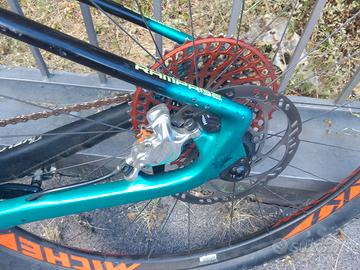 Lee Coughan, 9 Kg, ruote Miche HS AXY in carbonio tubeless, freni Formula Cura, pedivelle CAPO, pacco pignoni Leonardi factory, manubrio Syncros integrato. Telaio con normali segni di usura.