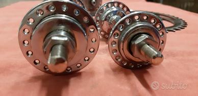 n.1 cp mozzi LEGNANO 36 fori tipo R con ingrassatori scritta corsivo anni 40' cromati (prezzo eu 150)