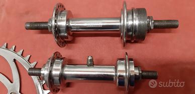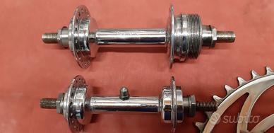 n.1 cp mozzi LEGNANO 40 e 32 fori con ingrassatori scritta stampatello anni 20' Nichelati (prezzo eu 200)