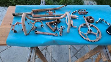 Vendo Legnano Roma in condizioni come da foto. Telaio leggerissimo con tubo sella diametro 27 . Leggermente storto sul tubo del carro destro, così come la guarnitura. La bici è pressoché completa, manca un cerchio, il posteriore, che era irrecuperabile. Manubrio Ambrosio Champion, freni Universal del periodo, cambio 5 velocità Gran Sport. Coni dei mozzi marchiati 1953. Bici da restauro completo, per ulteriori dettagli o foto meglio contatto telefonico anche Wattsapp. No offerte tramite Subito grazie. Simile a Bianchi, Wilier Triestina, Bottecchia ecc
