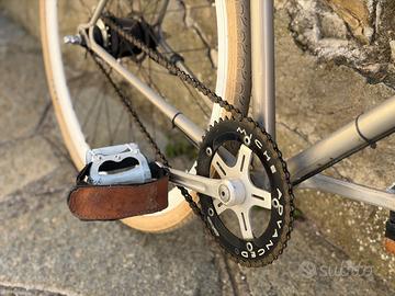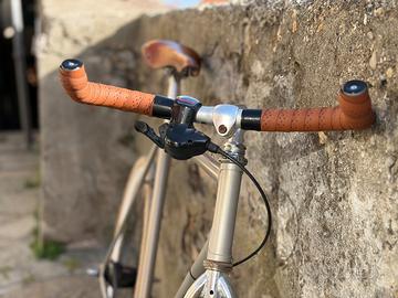 Caratteristiche: * Telaio 56 Legnano sport acciaio colombus * Trasmissione Shimano 7 speed con contropedale * Ruote con copertoni color crema e cerchi bianchi Giemme * Sella cuoio marrone coordinata * Forcella cromata * Pedali con cinghietti * Corona miche Perfetta per chi cerca uno stile vintage/urban senza rinunciare alla funzionalità.� Usata, in buone condizioni, pronta da pedalare.