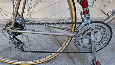 LEGNANO Corsa Eroica Bicicletta in acciaio anni '70 Telaio misura 58/60 cm - Tg. XL Cerchi da 28 pollici in alluminio Cambio CAMPAGNOLO 5 rapporti Guarnitura LEGNANO 52/42 denti Mozzi LEGNANO a flangia alta ... Sella in pelle e pedali con gabbiette Completa di portaborraccia Omaggio Pompa (non in foto) REVISIONATA E PRONTA ALL'USO Lubrificata, freni e cambio regolati OTTIMO STATO DI CONSERVAZIONE Telaio diritto, senza botte né ruggine Ideale per raduni e ciclo-storiche tipo L'EROICA o LA POLVEROSA Ritiro a mano hinterland nord Milano Eventuale spedizione 60 euro Bici introvabile in queste condizioni Proveniente da collezione privata NON VENDO A MENO - EVITARE OFFERTE Grazie