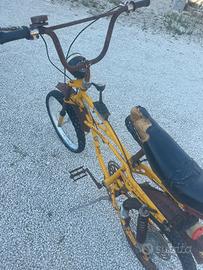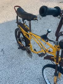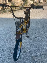 Vendo bici d’epoca modello Leopard MX Cross, colore giallo, con forcelle ammortizzate e faro anteriore.