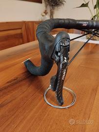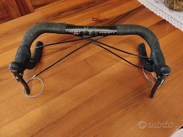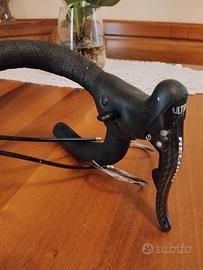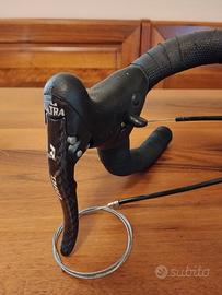 Vendo leve freno cambio Campagnolo Record 10 velocità in carbonio. Vengono vendute già montate su manubrio nastrato, con cavi e guaine inclusi
