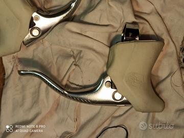 Ricambi Originali Vintage Campagnolo Coppia leve freni originali Campagnolo Gruppo Record C con gommini paramani copri supporto bianchi .