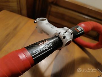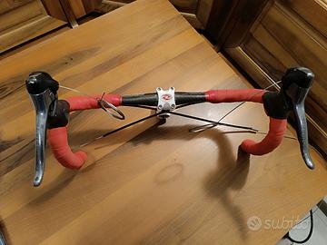 vendo coppia di leve freno/cambio Shimano Ultegra 10x2 velocità per bici da corsa, complete di manubrio in carbonio ITM Shape Carbon. già nastrato il manubrio, presenti guaine per i cavi del freno. ottime condizioni, nastro nuovo, con pipa in regalo, pronto da montare