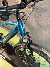 Condizione: Usata come nuova Anno: 2022 Taglia telaio: 18" Colore: Blu Tipo di cambio: Meccanico 1x10 Deragliatore posteriore: Shimano Deore Pacco pignoni: Shimano LINKGLIDE 11-48T Tipo di freno: Idraulico a disco Dischi freno: Shimano diam.180 Materiale telaio: Alluminio Forcella: Zoom 868S Air Boost con escursione 120 mm Ruote: 29" Motore: Vinka E20 250Watt - 80Nm Batteria: Levit SP2.1 630Wh Chilometri tot. 40