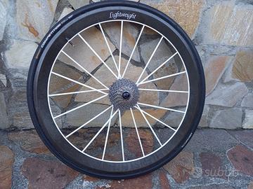 ruote lightweight carbonio Millenstein wiess usate pochissimo montate con cassetta Ultegra Shimano 11-28 tubolari nuovi 25 pista frenante nuova