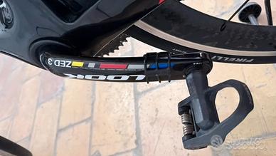 Vendo splendida LOOK 795 Aerolight, un concentrato di aerodinamica e integrazione totale. La bici è in condizioni estetiche e meccaniche eccellenti, curata maniacalmente e pronta all’uso. Perfetta per atleti di statura medio-piccola o donne che cercano il massimo delle prestazioni. CARATTERISTICHE TECNICHE: • Telaio: LOOK 795 Aerolight HM (High Modulus) Carbon, certificato UCI. Design iconico con tubo orizzontale a filo dell’attacco manubrio. • Taglia: XS (49) – Reach: 365mm / Stack: 510mm. • Trasmissione: Gruppo elettronico Shimano Dura-Ace Di2 11v. Cambio fulmineo e preciso. Centralina montata su fodero basso (vedi foto). • Guarnitura: LOOK ZED 3 Monobloc in carbonio. Rigidità estrema e leggerezza record. • Ruote: Mavic Cosmic Pro Carbon ad alto profilo con pista frenante in alluminio (frenata sicura in ogni condizione). • Pneumatici: Pirelli P ZERO Velo, ottima tenuta e scorrevolezza. • Cockpit Integrato: Manubrio Carbon Aero Design con attacco AeroStem integrato. Include supporto Garmin originale. • Freni: Pinze Shimano Dura-Ace perfettamente regolate. • Sella: Selle Italia SLR Friction Free con binari in carbonio. • Reggisella: Integrato LOOK E-Post 2 con elastomero antivibrazioni. STATO E MANUTENZIONE: La bici non presenta graffi rilevanti o danni strutturali. Nastro manubrio in ottimo stato. Trasmissione pulita e lubrificata, cassetta pignoni e catena con pochissimi chilometri. Includo i pedali Look Kéo Blade Carbon e due portaborraccia Bontrager RL con borraccia coordinata. PERCHÉ COMPRARLA: È una delle bici più aerodinamiche mai prodotte, con un design che non passa inosservato. Il montaggio Dura-Ace Di2 e le ruote Mavic la rendono un mezzo pronto-gara senza necessità di upgrade.