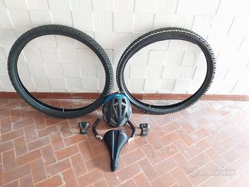 vendo lotto, prezzo totale 30, comprendente: - casco btwin sport 5 misura 54 - 57 regolabile; - copri sella gel tech btwin; - 2 copertoni mtb 27,5 x 2.25; - 2 camere d'aria mtb 27,5; - 2 appendici manubrio btwin x mtb; - 2 blocca piedi x pedali; disponibile alla spedizione, previo accordo tra le parti