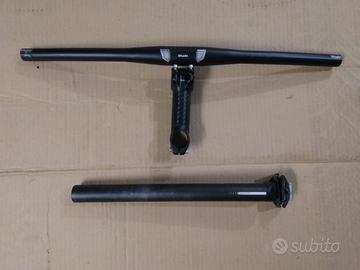 Componenti FSA in alluminio: 1 manubrio corsa largo 420 mm diam. 31,8 mm, 1 pipa L 110 mm att. manubrio diam. 31,8 mm, 1 reggisella L 350 mm diam. 31,8 mm.
