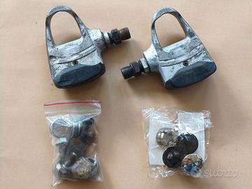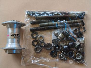 LOTTO MISTO COMPONENTI/RICAMBI - leve freno NERE per cavo tipo corsa (perfettamente funzionanti) - spezzoni di cavo freno tipo corsa - raggi (credo siano per ruote 26") - nippli in quantita' - corpo mozzo posteriore SHIMANO parallax - assi per mozzi anteriori e posteriori - coni per mozzi e bulloneria varia (alcuni coni sono stati scartati, altri sono utilizzabili) - freno CAMPAGNOLO Veloce (incompleto, ma non danneggiato) - pastiglie freno CAMPAGNOLO - movimento centrale perno quadro CAMPAGNOLO (ruota libero, non fluidissimo, forse con una pulizia e ingrassaggio puo' tornare utilizzabile) - catena 9 velocita' SHIMANO, con falsa maglia (misurata, ancora utilizzabile) - catena 8 velocita' KMC, con falsa maglia (misurata, perfetta) - spezzoni cavo freno MTB - morsetto reggisella - portaborraccia carbonio (rotto il supporto di alluminio, da riparare fermo inferiore) - pignoni di ricambio usati ma ancora utilizzabili (11T, 13T, 11vel.) - bulloni e tappi per guarniture perno quadro - tappi manubrio corsa nuovi - pedali EXUS molto usati, ma ancora utilizzabili, i perni ruotano bene, leggermente duri, andrebbero lubrificati. - sganci rapidi completi e non, e/o da riparare - ricambi vari SHIMANO per manettini e deragliatori - spezzoni di guaine cambio e freno - capiguaina - selle BASSANO, SELLE ITALIA, utilizzabili e/o da rifoderare, ma strutturalmente integre. prezzo NON trattabile, grazie.