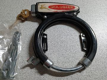 lucchetto ad arco per bicicletta di marca Gold Deer.Questo tipo di lucchetto è spesso utilizzato come antifurto per biciclette d'epoca, come quelle con freni a bacchetta o di tipo olandese.