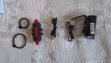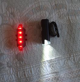 Luce bicicletta anteriore e posteriore, ricaricabile USB Modalità d'uso: luce fissa o lampeggiante Il kit include: Luce anteriore Fanale posteriore 2 Elementi di fissaggio 2 cavi USB