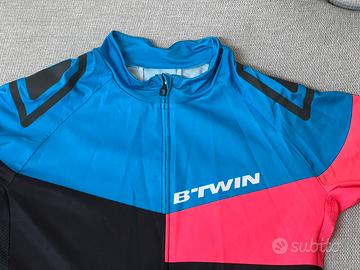 Vendo maglia da ciclismo B’Twin di alta qualità, modello con tasca posteriore impermeabile (“Water Repellent Pocket”), perfetta per uscite su strada o MTB.