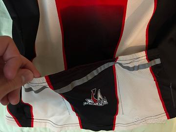 Maglia da ciclismo tecnica In Race Concept linea Demon Dettagli: •Taglia M •Tessuto traspirante •Zip frontale corta •Tasche posteriori con banda riflettente •Grafica rosso/nero/bianco Condizioni: •Buone condizioni generali •minuscoli segni di utilizzo visibili nelle foto Adatta per bici da strada o mtb #ciclismo #maglia #cycling #bici #sport #demon #inraceconcept