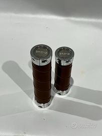 In vendita manopole Brooks in cuoio color miele, modello Slender Grips Lock-On, ideali per bici vintage, gravel, touring o urban. Manopole nuove, in cuoio di alta qualità, con sistema Lock-On per un fissaggio sicuro e stabile sul manubrio.