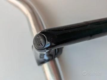 Componenti ideali per restauro bici da corsa d’epoca, progetto eroica o allestimento vintage. Il manubrio in alluminio mantiene una buona struttura con normali segni d’uso. La pipa presenta segni superficiali coerenti con l’età ma senza crepe o deformazioni. Le leve freno Saccon sono complete e funzionanti, con coprileva originali.