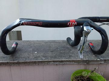 Manubrio per bici corsa in carbonio aero, alcuni segni a ben strutturato e integro. Se richiesto posso spedire.