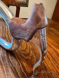 Vendo bellissimo manubrio marca Italmanubri Mod. Mondial vintage anni ’80 per bici da corsa con attacco pipa Italmanubri e leve/gomme dei freni Shimano. Senza ricopertura. Praticamente nuovo. Larghezza esterna manubrio cm 41 e lunghezza attacco pipa cm 7.