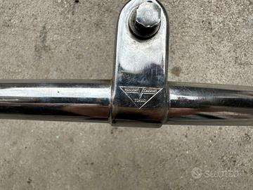Manubrio bicicletta usato uomo o donna. Ottimo per restaurare biciclette d'epoca. Marca Schierano Presenta dei graffi (vedi foto). Una manopola è rotta.