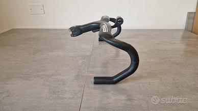 Manubrio integrato carbonio FSA Plasma modello S-Works nero Larghezza centrale 44 cm e attacco 130 mm Completo di staffa conta km abbinata