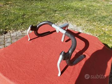 Manubrio da corsa francese. Pipa cm.9 Larghezza manubrio cm.40 . Leve complete di cappuccio in gomma Weinmann. Piega rivestita in pelle dalla Manufrance marca AVA