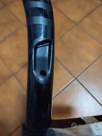 Vendo piega manubrio deda superleggera da 440mm (peso 180gr) con attacco manubrio superbox da 130mm per passaggio cavi integrato. Peso finale piega più attacco 355 gr (alanera deda pesa 340gr per fare confronto).