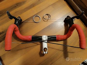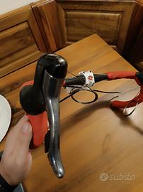 vendo coppia di leve freno/cambio Shimano Ultegra 10x2 velocità per bici da corsa, complete di manubrio in carbonio ITM Shape Carbon. già nastrato il manubrio, presenti guaine per i cavi del freno. ottime condizioni, nastro nuovo, con pipa in regalo, pronto da montare