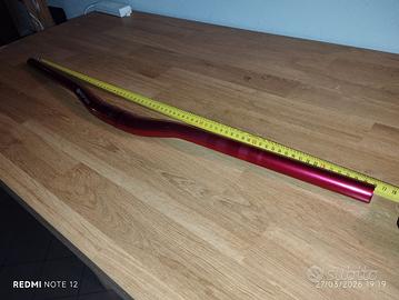 Vendo manubrio per Mountain Bike marca Promax in eccellenti condizioni. Il colore è un particolare bordeaux/rosso metallizzato con finitura anodizzata, molto bello dal vivo. Si tratta di un modello Riser (rialzato), ideale per chi cerca una guida più comoda, un miglior controllo in discesa e nello stretto grazie alla sua larghezza generosa. Caratteristiche tecniche: Materiale: Alluminio leggero e resistente. Larghezza: 760 mm (misura originale, mai tagliato). Diametro attacco centrale: 31.8 mm (standard universale MTB). Rise (Rialzo): circa 20-25 mm. Dettagli: Grafiche originali Promax intatte, mirino centrale per il perfetto centraggio e scale millimetrate alle estremità per eventuale accorciamento. Condizioni: Il manubrio è strutturalmente perfetto. Presenta solo i normali e leggerissimi segni di montaggio nella zona centrale (coperti dall'attacco manubrio) e delle leve, come visibile in foto.